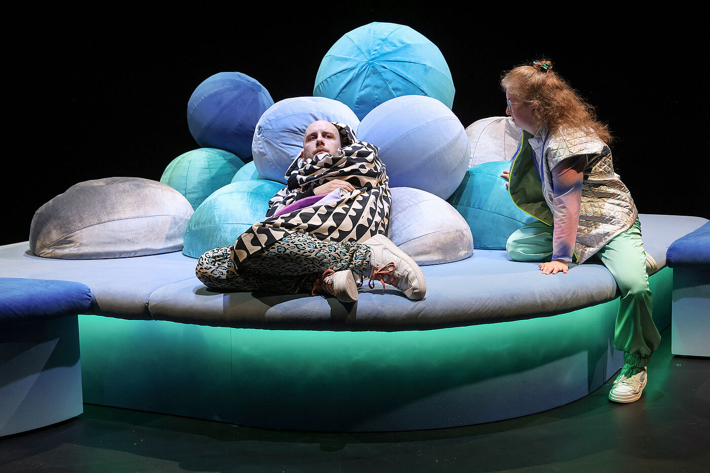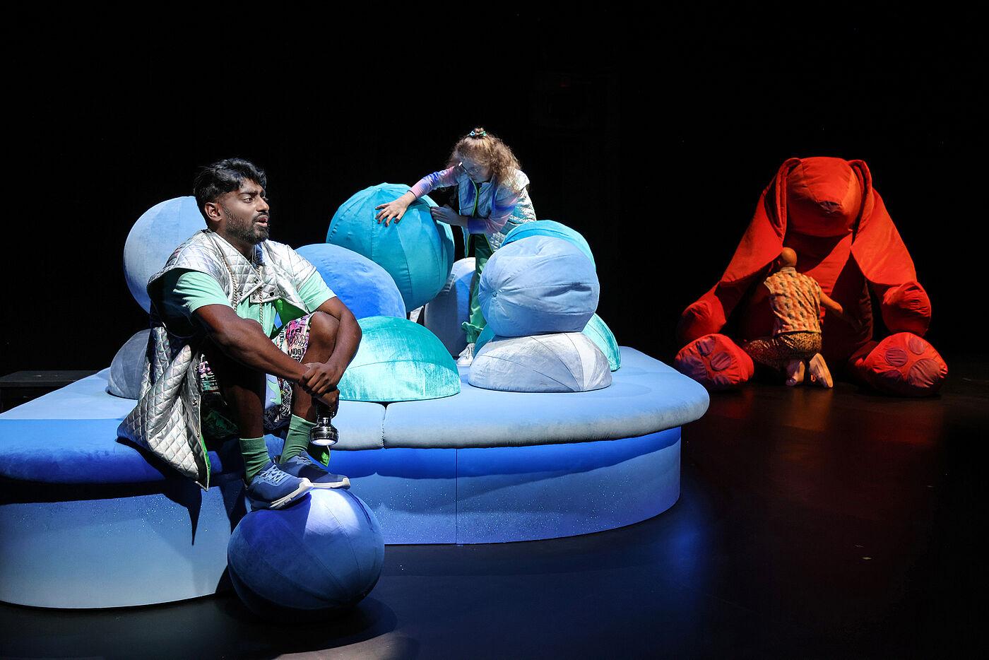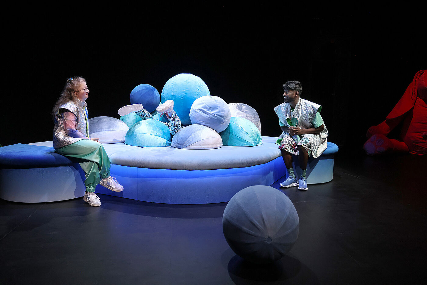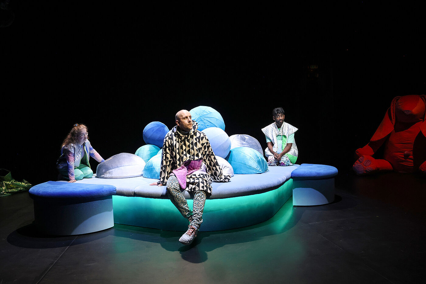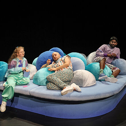 Das Ensemble nimmt das Publikum auf eine feinfühlige Reise unter die Erde mit, in ein Höhlensystem aus Ungewissheit und Schwermut, aber auch aus Freundschaft und der Stärke des Füreinanderdaseins. Die komplexen Gefühle einer Depression werden so sinnlich im Raum erlebbar. Clara Leinemann schafft es, poetisch und einfühlsam von einer allumfassenden Traurigkeit zu erzählen und dabei Leichtigkeit zu bewahren. Der mehrfach ausgezeichnete Text gibt Hoffnung. Nicht darauf, dass sich die Depression einfach wieder auflöst, aber darauf, dass man gemeinsam einen guten Umgang mit ihr finden kann.